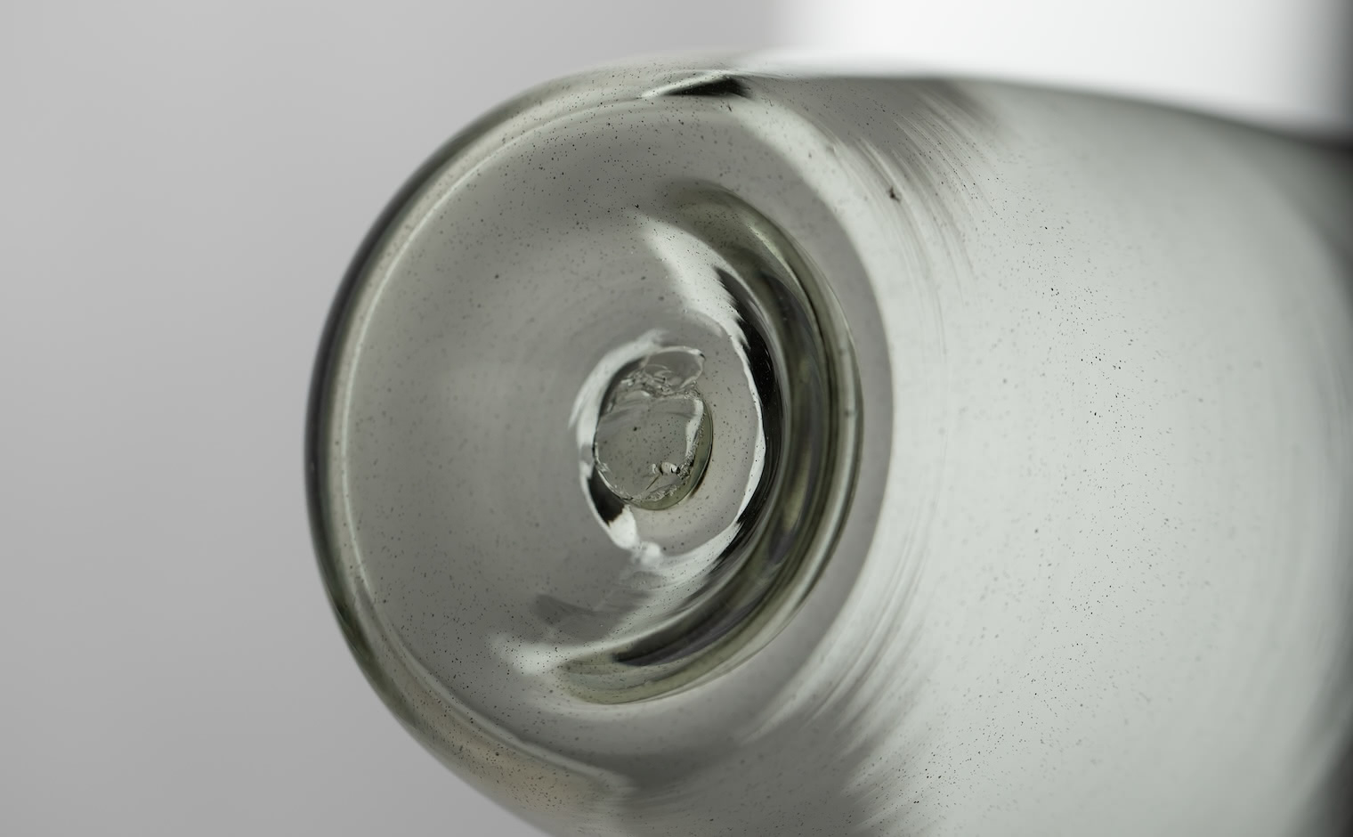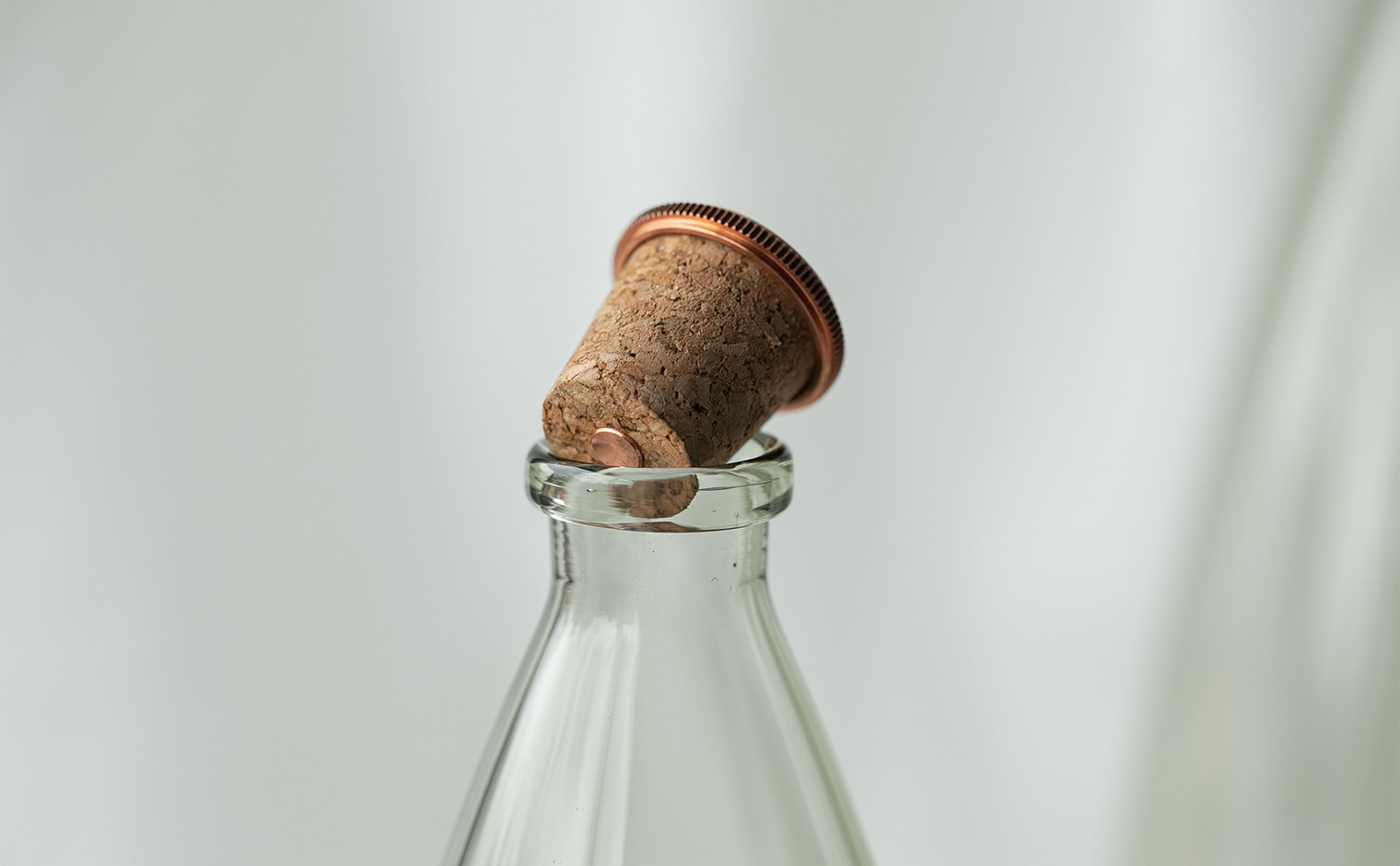 Bottled beauty. As if taken from the past, this deep, lengthened antique design with a cork-finished top is reminiscent of glass vessels of the earliest civilizations.